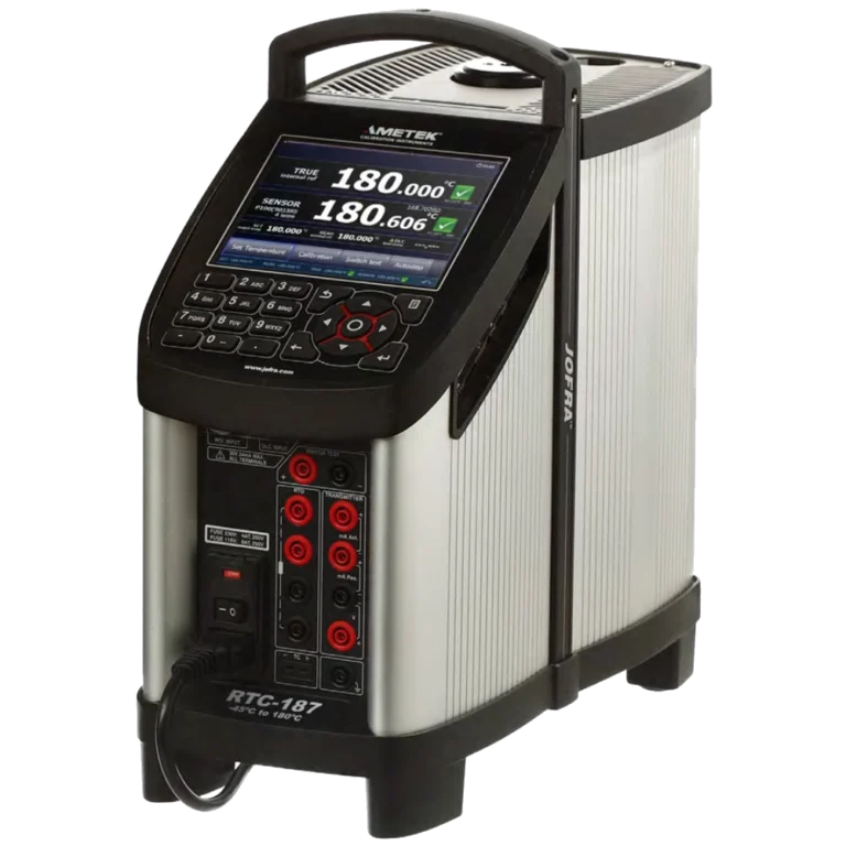 - Calibrador de temperatura de referencia RTC-A. Calibrador de temperatura de referencia RTC-B con entrada para sensor de referencia, sensor DLC y sensores bajo prueba.